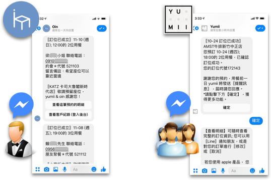 2. 餐廳用 facebook messenger 接收預約訂單,教育訓練只要一分鐘。