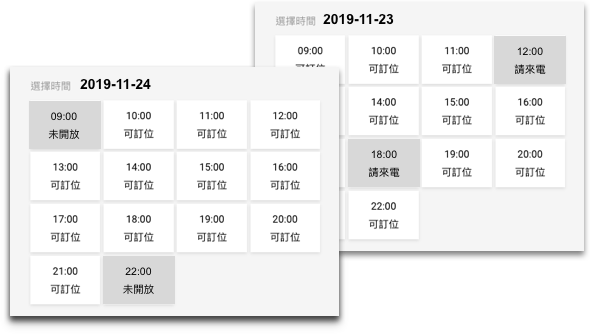 1. 每一個營運日可以設定為六段,每段都可以設定開放預約的額度,以避免超賣。