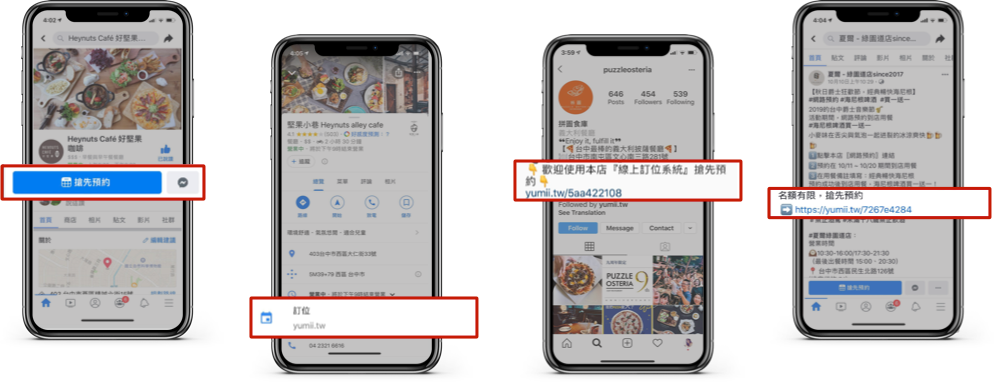 導入Yumii網路預約之後,不論是藉由活動發文、打卡分享、或是部落格美食文章,消費者都可以